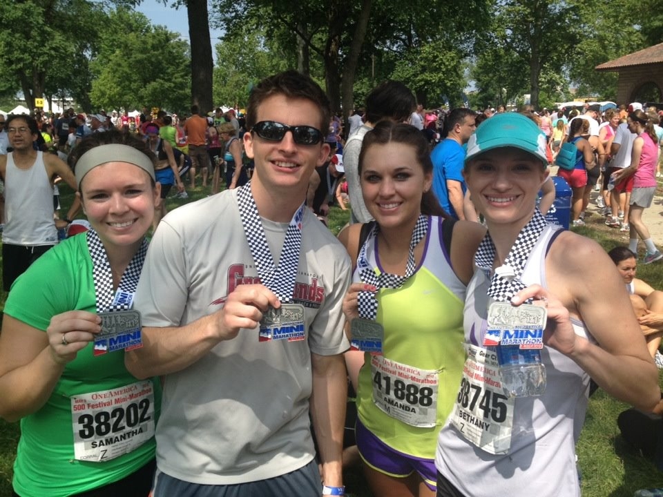 Before I got pregnant, I got a crazy hair and decided to walk the OneAmerica 500 Festival Mini-Marathon. For those of you that know me, the fact that I not only signed up to walk 13.1 miles, but actually joined a gym to train, is shocking. Like I said, a total wild hair.