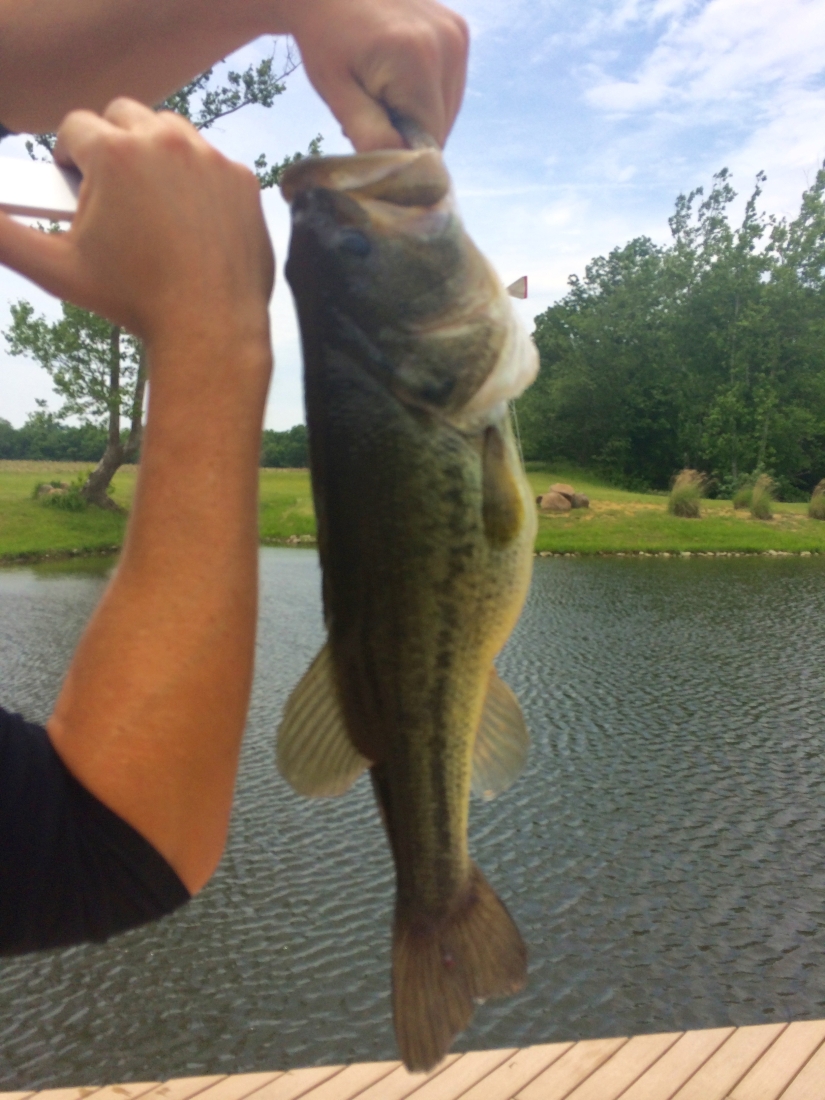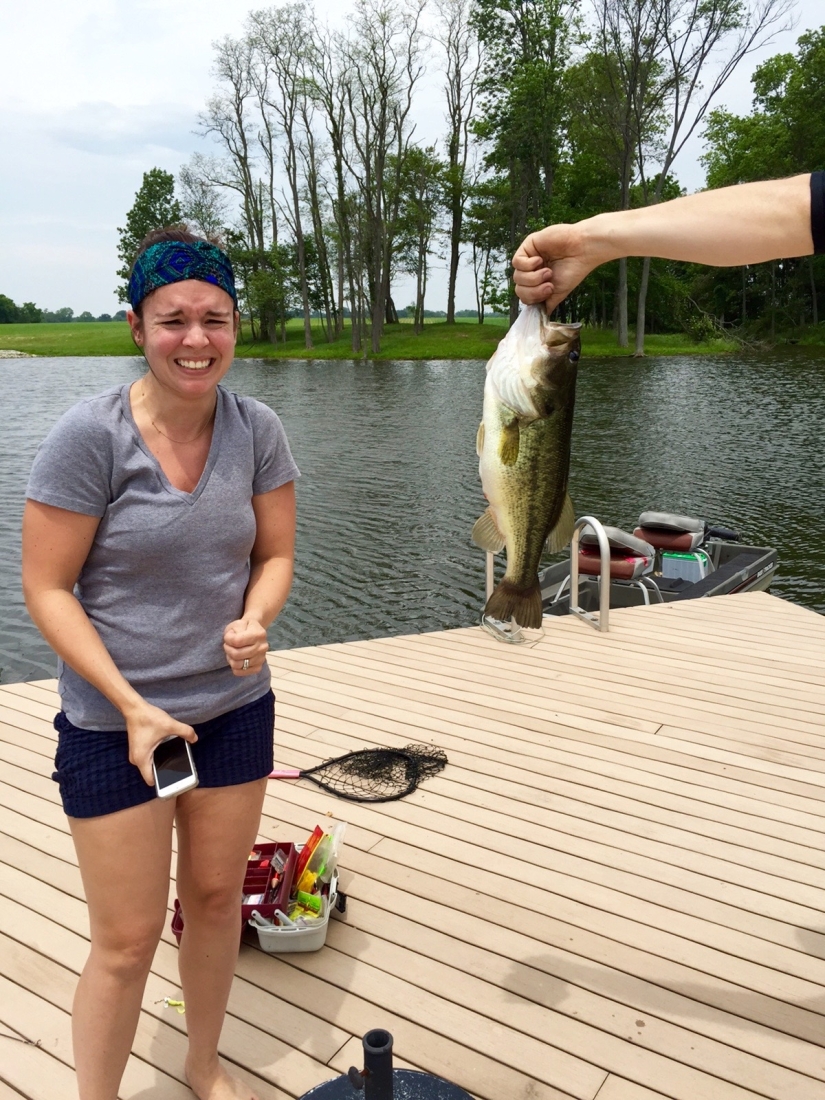 I’m pretty sure that bass ate the baby fish I was trying to reel in, and I managed to catch two at once. Now, my husband is 6’3″ and has the arms of a monkey… if that says anything about how big this fish was. We’re guessing it was 10 lbs., but I can’t say for sure because I wouldn’t go anywhere NEAR that thing.