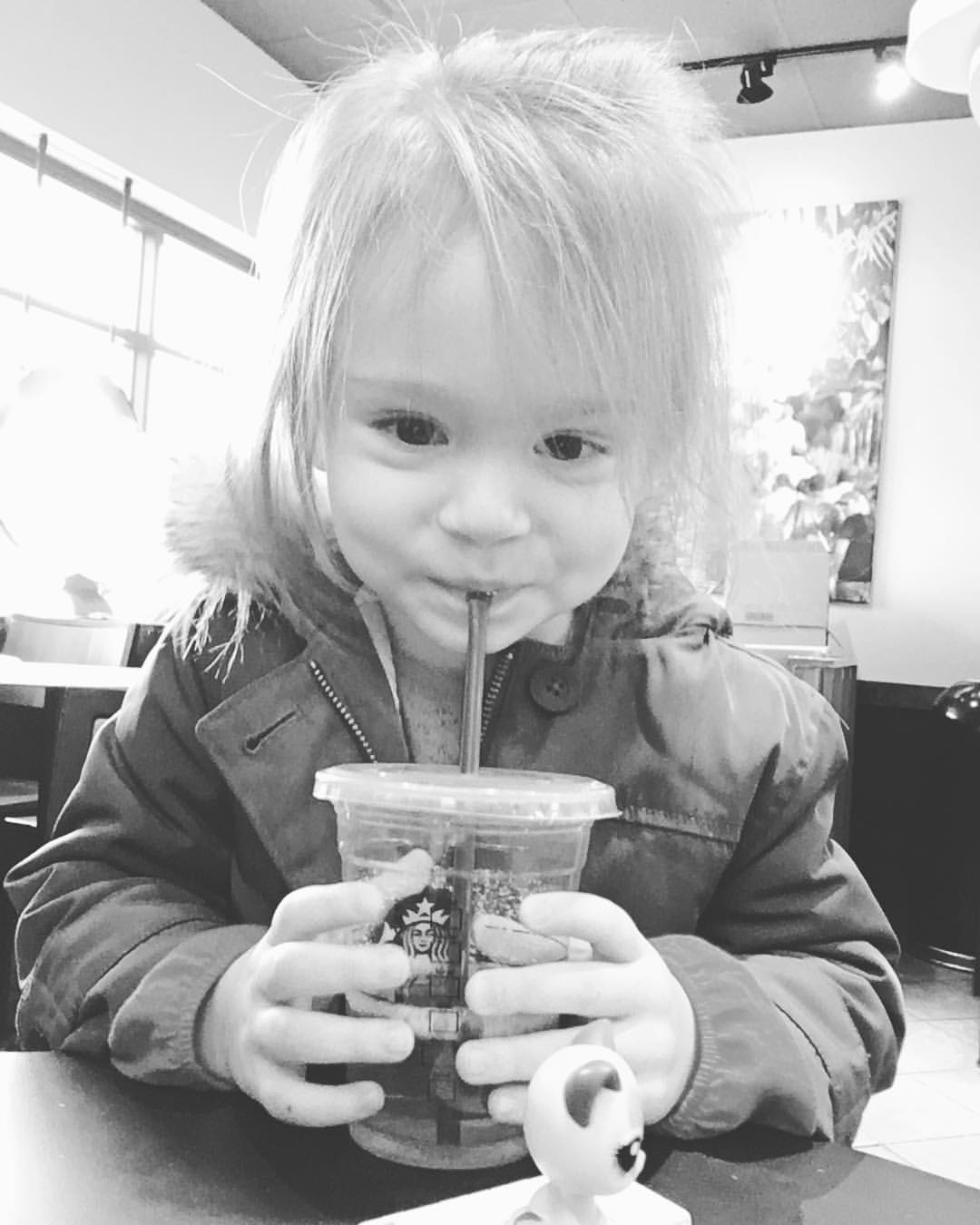 I’m guessing she associates “shoppin'” with Starbucks and french fries, but whatever. Still adorable.