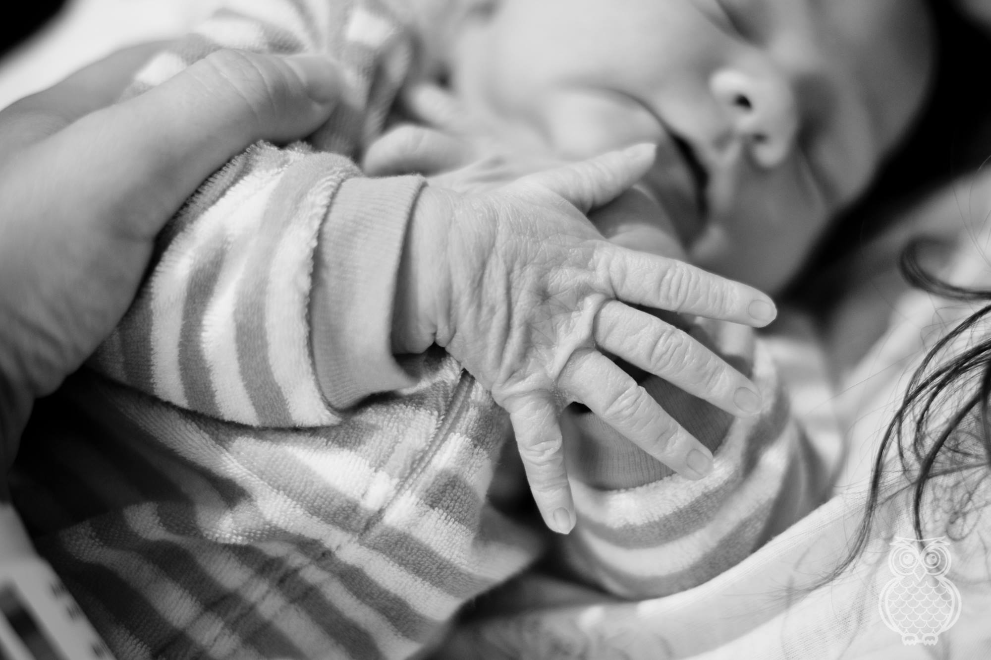 I’m kind of obsessed with all things black and white for baby right now, including this flashback b&w photo of my first babe. Look at that little wrinkly hand!