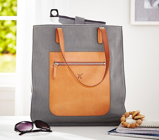 PotteryBarnBabyGreyCanvasLeatherTote994. Pottery Barn Kids – Grey Canvas Leather Tote ($99) – Also a diaper bag, but not as obviously. That’s important to me. This tote would be smaller than my current bag, and could be monogrammed (which is always fun).