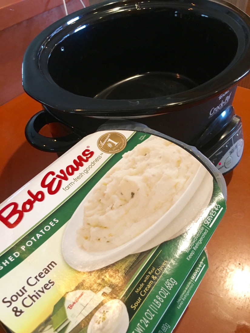 Yes, I purchased six packages of Bob Evan’s brand mashed potatoes the morning before Thanksgiving (the cashier actually laughed at me), and put them in a crock pot to look like I made them. I even brought fresh chives from my parent’s house just to really make it look like I knew what I was doing.