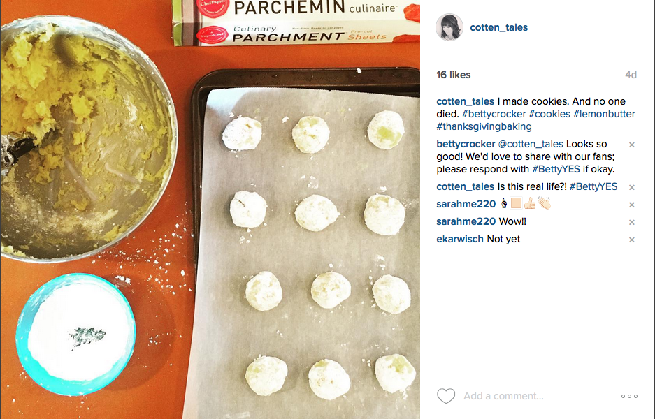 Let’s just check out the comments on my nicely staged Instagram photo of me making cookies. Oh so blogger-ish.