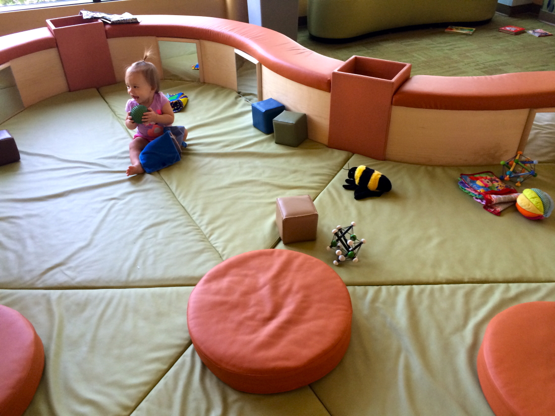 We headed straight for the Playscape; an obvious choice based on the exhibit’s focus of sensory play and exploration for infants, toddlers and preschoolers. My daughter tends to be overwhelmed by new situations, specifically loud environments and crowded rooms, so I was a little nervous about how our first visit would go down. Playscape’s bright natural light and ample space to play was not only perfect, but welcoming for our little mommy-daughter playdate.
