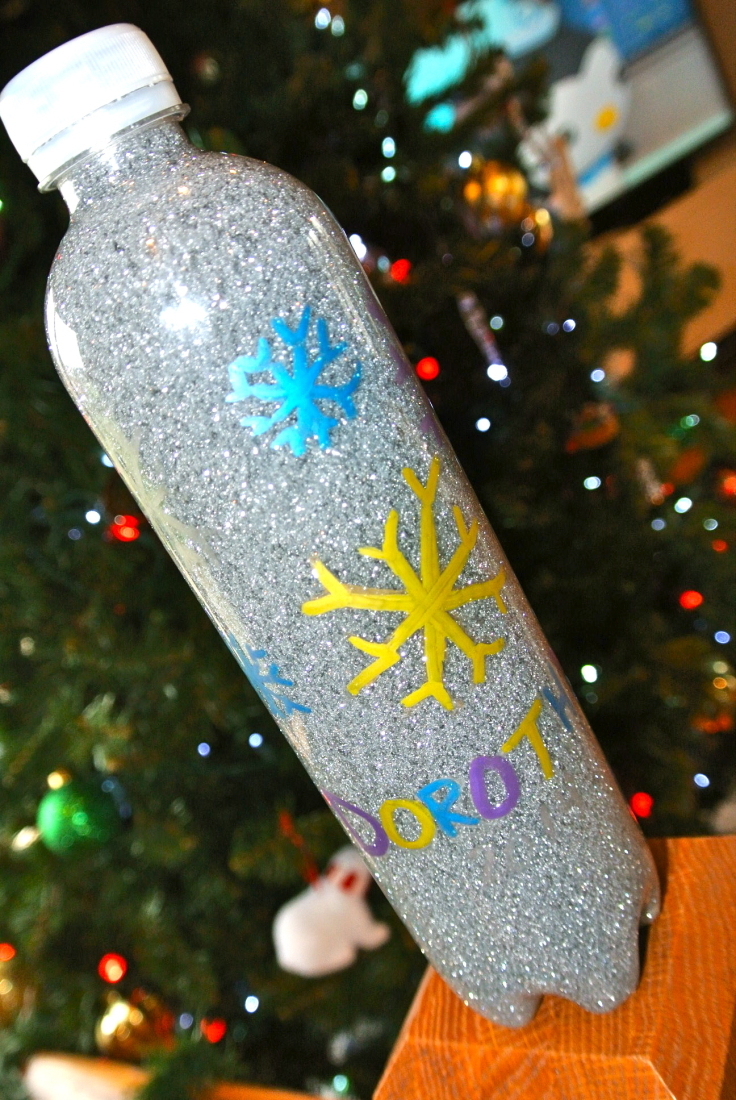 - Add in as much or as little glitter (aka “snow”) as you would like! We thought it was fun to mix different colors and textures of glitter to make a true winter wonderland. In Dorothy’s and my opinion – the more sparkles, the better. 😉