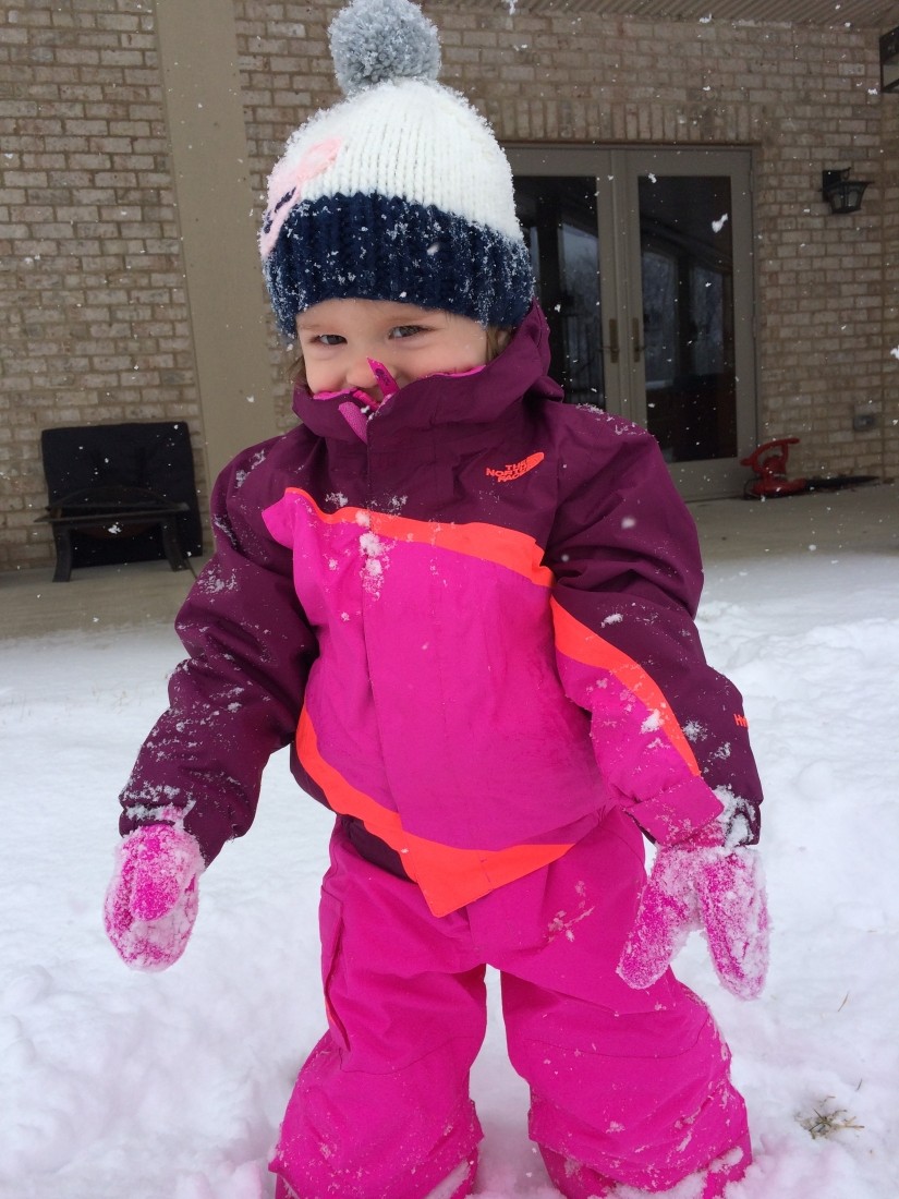 It’s the last week of February here in the arctic (formerly known as central Indiana), and today we finally got to bust out Dorothy’s new snowsuit. I can assure you it’s not our first real snowfall of the season, but certainly the first one accompanied by above zero temperatures.