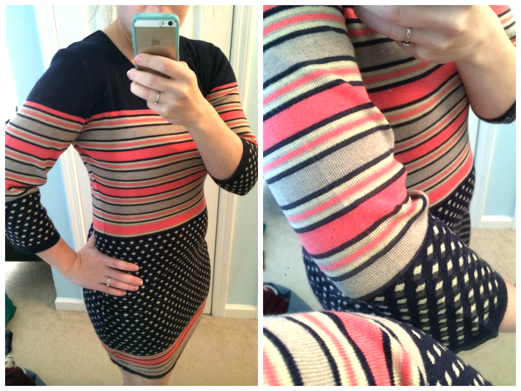 I thought I would for sure keep this dress. Unfortunately the sleeves were too big, and the bottom was too small. But, I did love the colors and print, and I think I could see myself wearing sweater dresses in my new daily life. They’re easy, warm and casual. Hopefully Stitch Fix sends me more like this – just in a normal size.