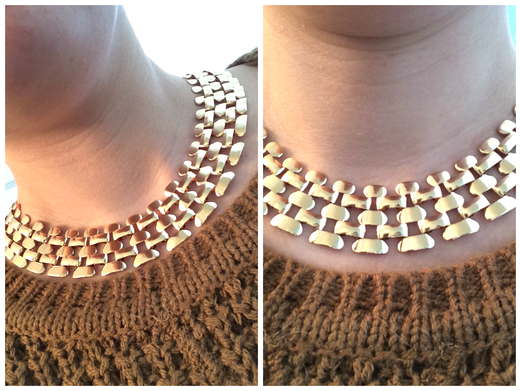 This is so me. Simple, yet makes a statement, and goes with everything. Plus, I’m totally crushing on gold right now, so this necklace fits the bill.
