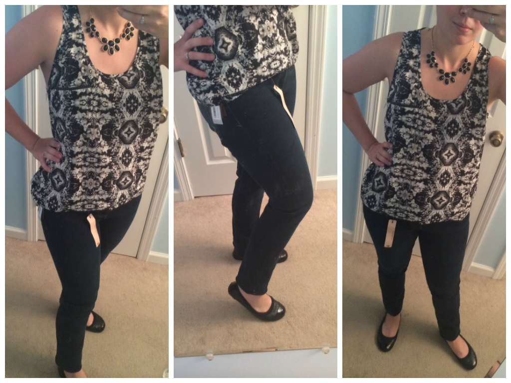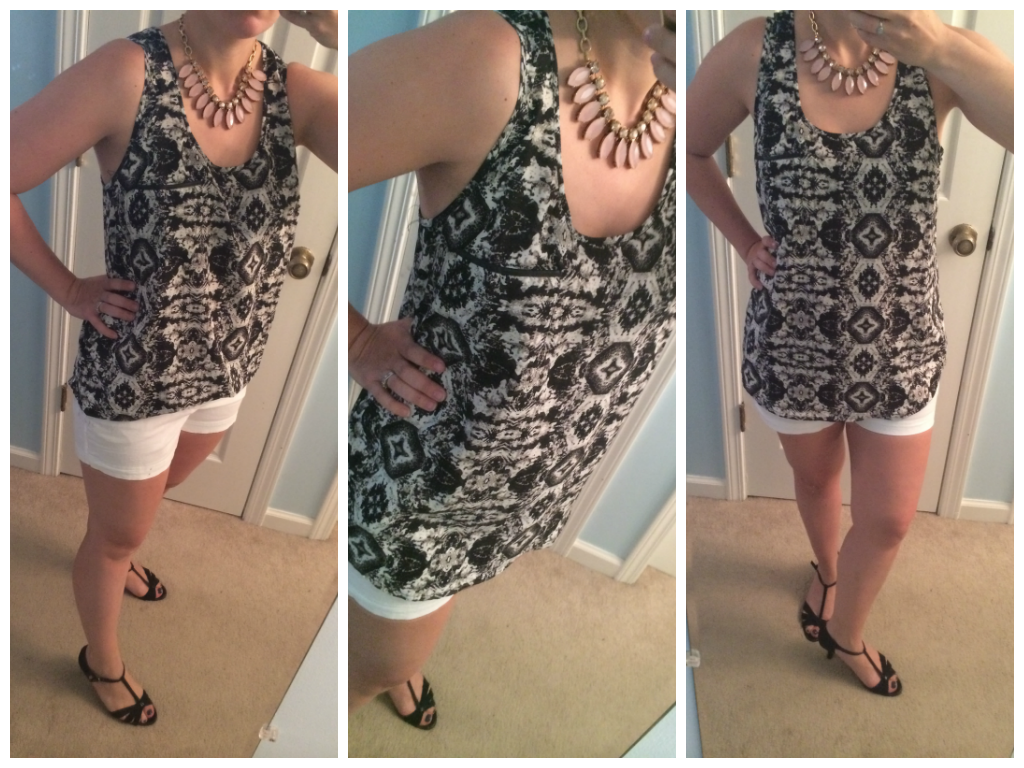 I think I’ve officially hit a major post-pregnancy milestone – I just wanted this tank to be more fitted around my belly. Wishing for tighter clothes post-baby? Pretty sure I haven’t thought that in a day or 3487234.