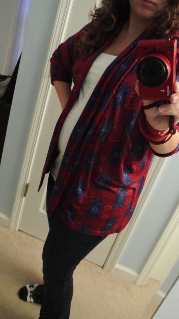 I REALLY wanted to like this cardigan. I loved the fabric, I loved the print, I loved the colors… but it was just too big! Even belted, I felt like I was wearing a sack. This is a cardigan meant for tall people… and apparently my 5 ft. 3 in. self doesn’t qualify.