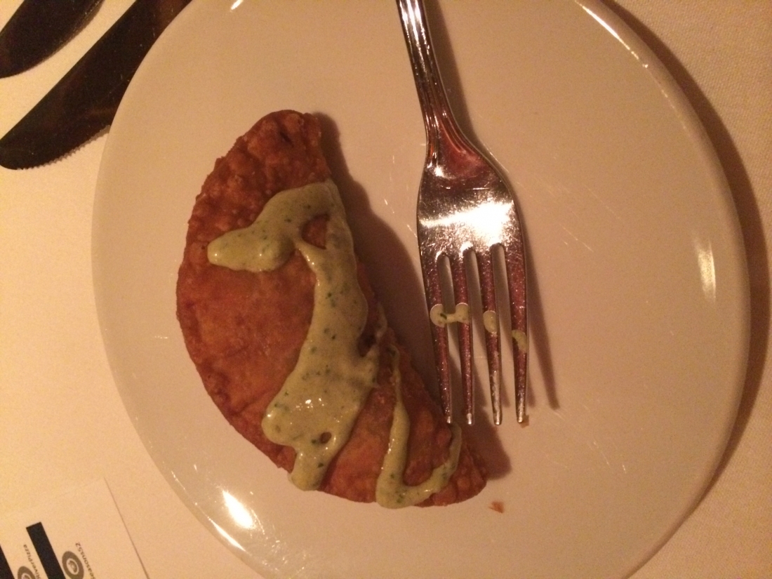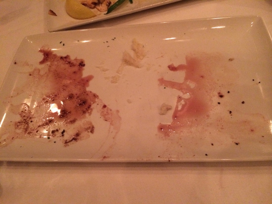 We started at one of the husband’s and my favorite restaurants, Fleming’s Prime Steakhouse, for cocktails and appetizers. The above is what you would call a short rib empanada with poblano creme – an interesting choice for a steak place, in my opinion. I was skeptical based on the way this dish looks, but I’m here to tell you that it was absolutely delicious. I definitely recommend it over the salad appetizers (if you know me, you’re not shocked by this). Check out Fleming’s Prime Steakhouse’s full Northside Night’s menu here.
