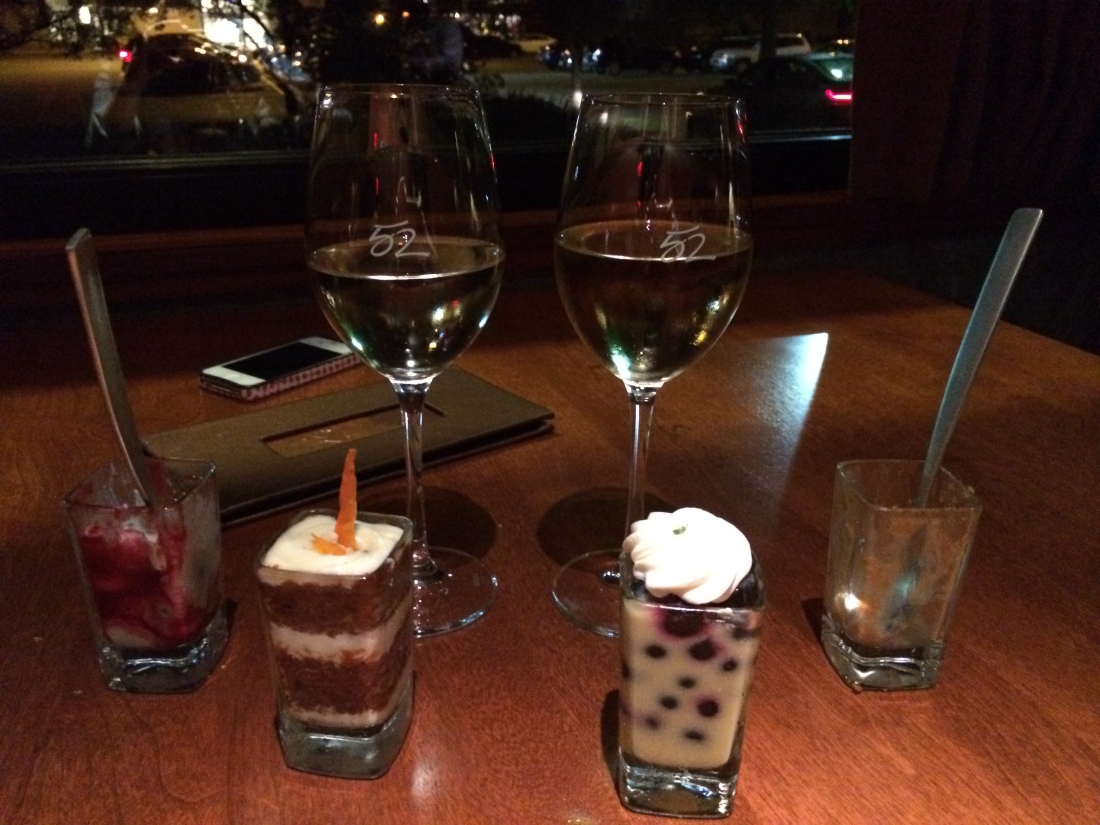 Dessert and wine followed at Seasons 52. Since we were acting in our official media roles, Kristin and I felt the need to sample not one, but FOUR desserts. Don’t judge. I was a bit put off by the chunk of mozzarella cheese in my apple pie shooter (yes, you read that right), but other than that the selection was fantastic. My favorite? The blueberry and lemon curd shooter. We may have been the last people lingering at the restaurant that night (except for the Smiley Morning Show, who probably closed down the bar), but I couldn’t ask for a better escape from our moving chaos than a little girl time with the bestie and my agency partner-in-crime, Susan. A perfect ending to a night full of incredible cuisine.