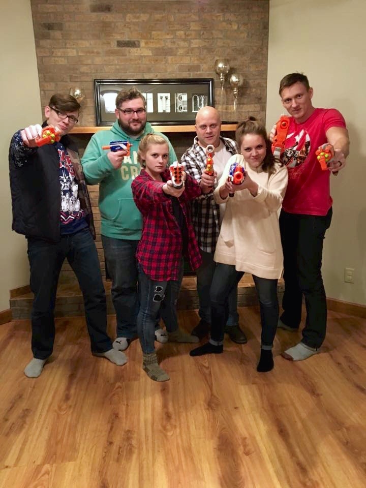 Mr. Cotten and his siblings have the tradition of buying each other Nerf guns for Christmas. A Nerf gun war proceeded to break out in our basement, which kept the baby awake until far later than Santa Claus had hoped.