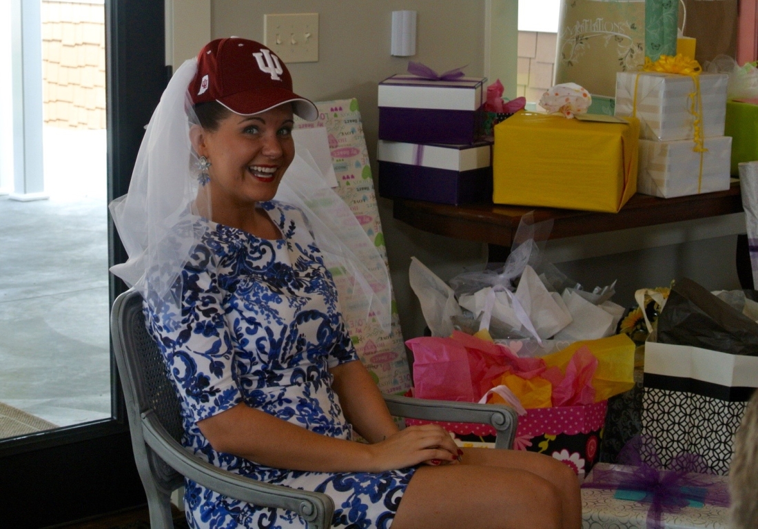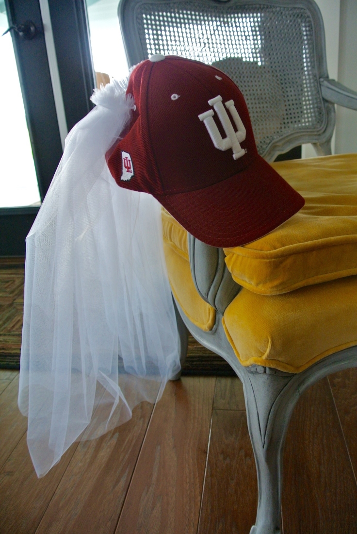 At my bridal shower, seven years ago, I was presented with a bedazzled scuba mask veil. It was just something fun that represented me (or an inside joke, but that’s another story). Obviously we wanted to keep with tradition! Since Kayla is an IU alumna, and a Hoosier basketball fanatic, I would say her honorary veil suited her well.