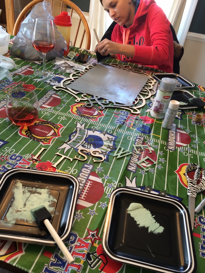 My bestie Amanda invaded the Cotten house last week to work on some wedding crafts and drink wine with me.