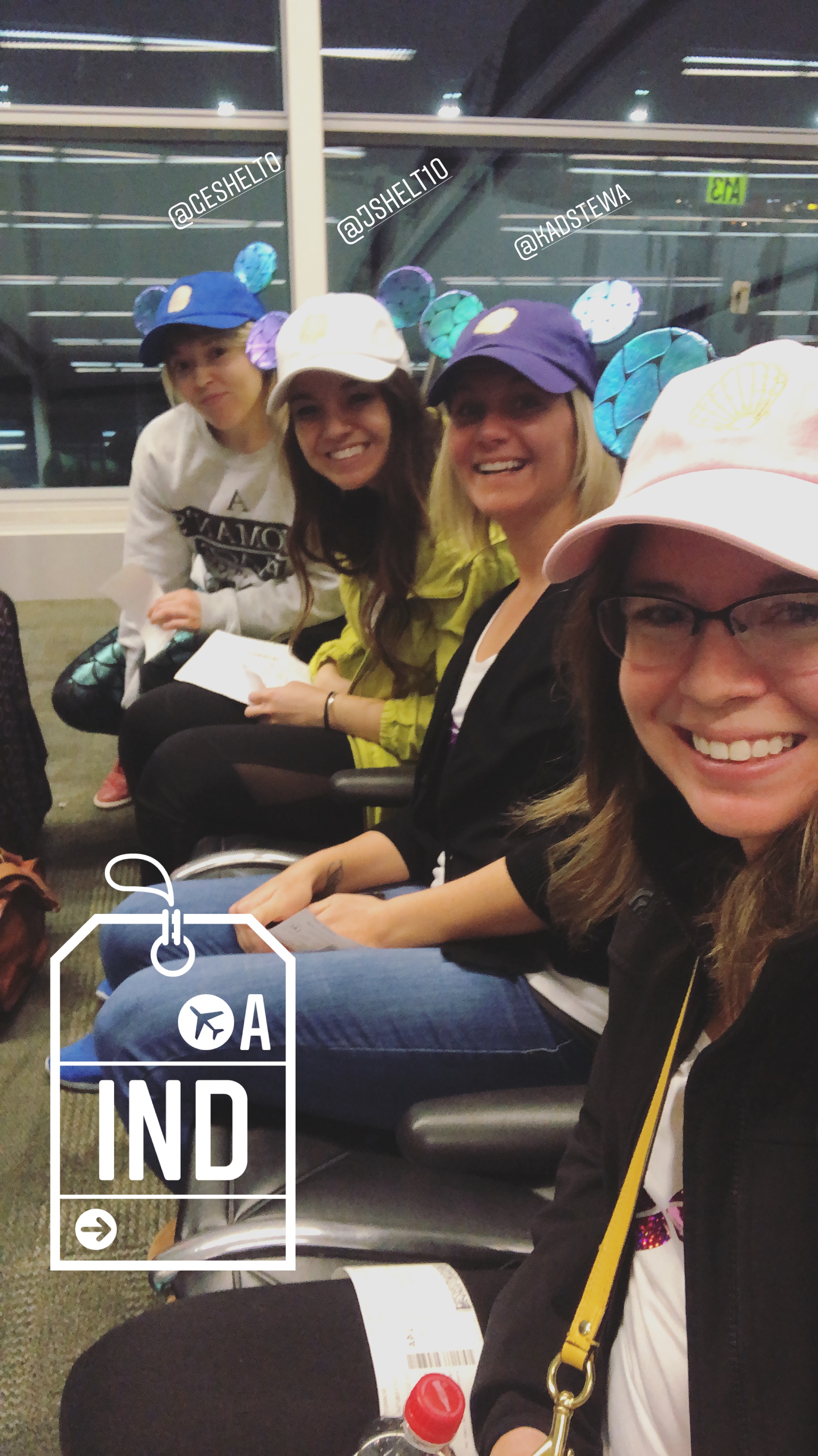We actually went through airport security wearing Mickey ears and mermaid clamshell bra shirts (and received many compliments!). We chose to fly out of Indianapolis SUPER EARLY, therefore getting us to Florida by 8:30 a.m. Early flights equal extra time at Mickey’s House, and none of us were upset about that!