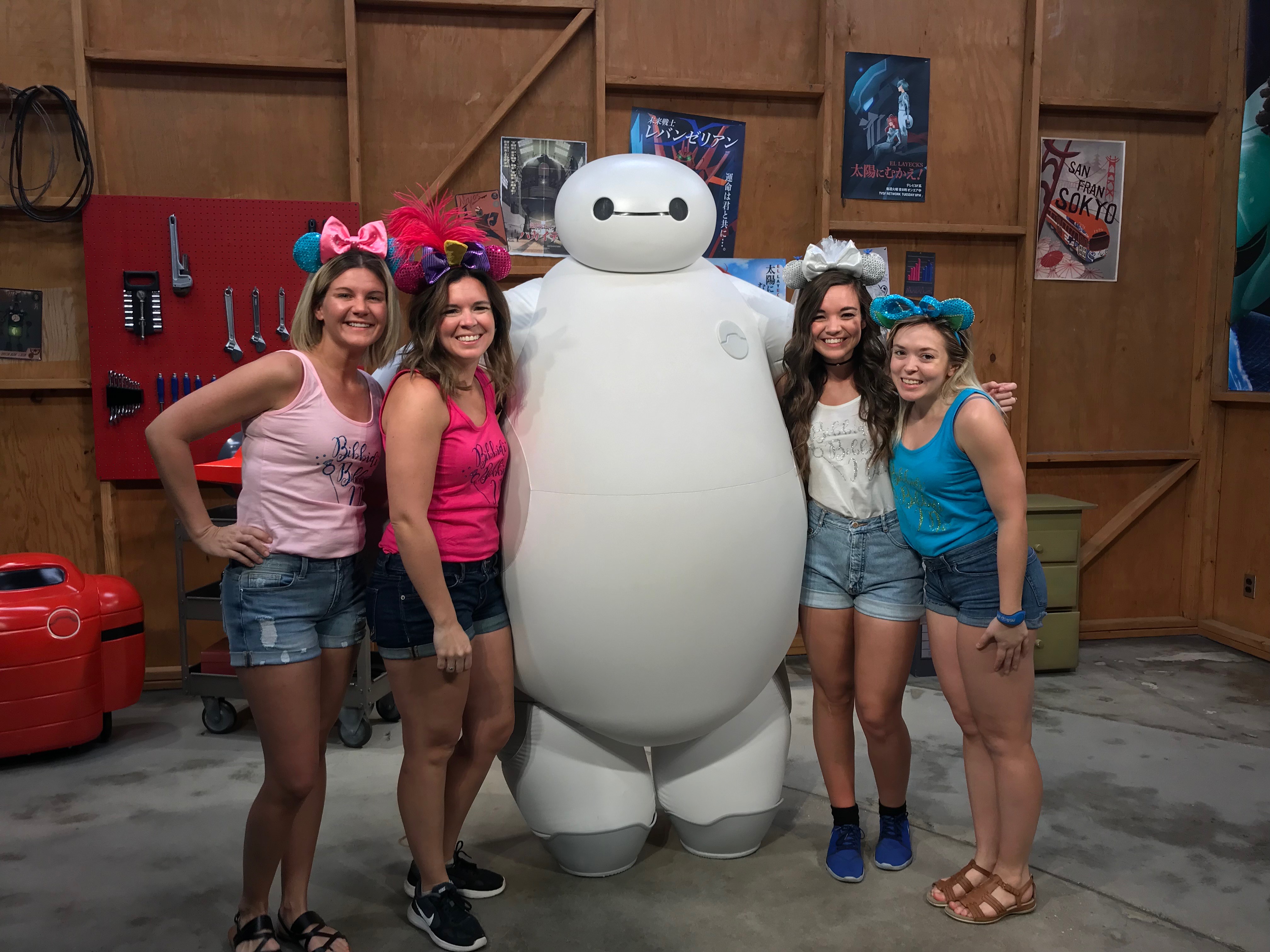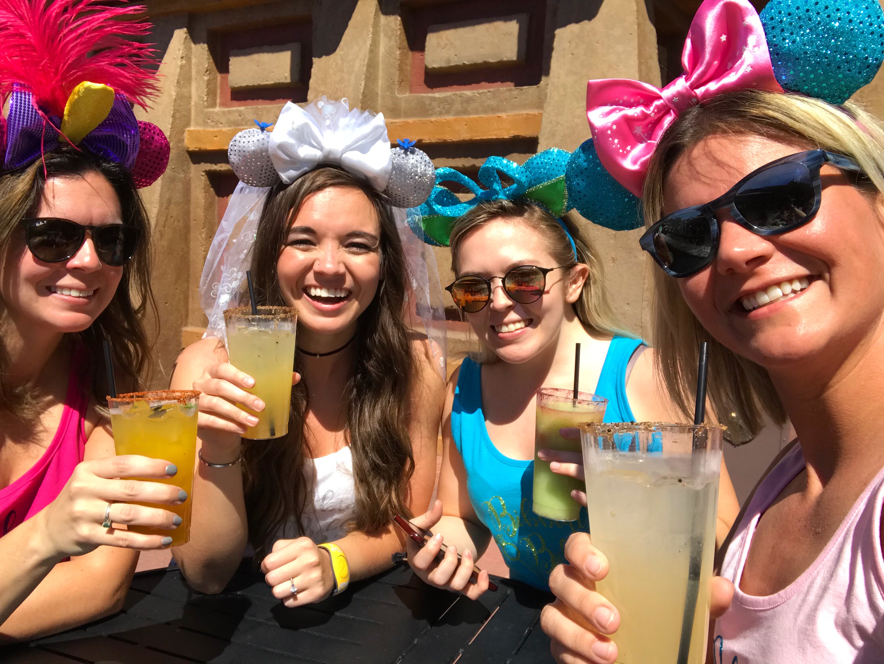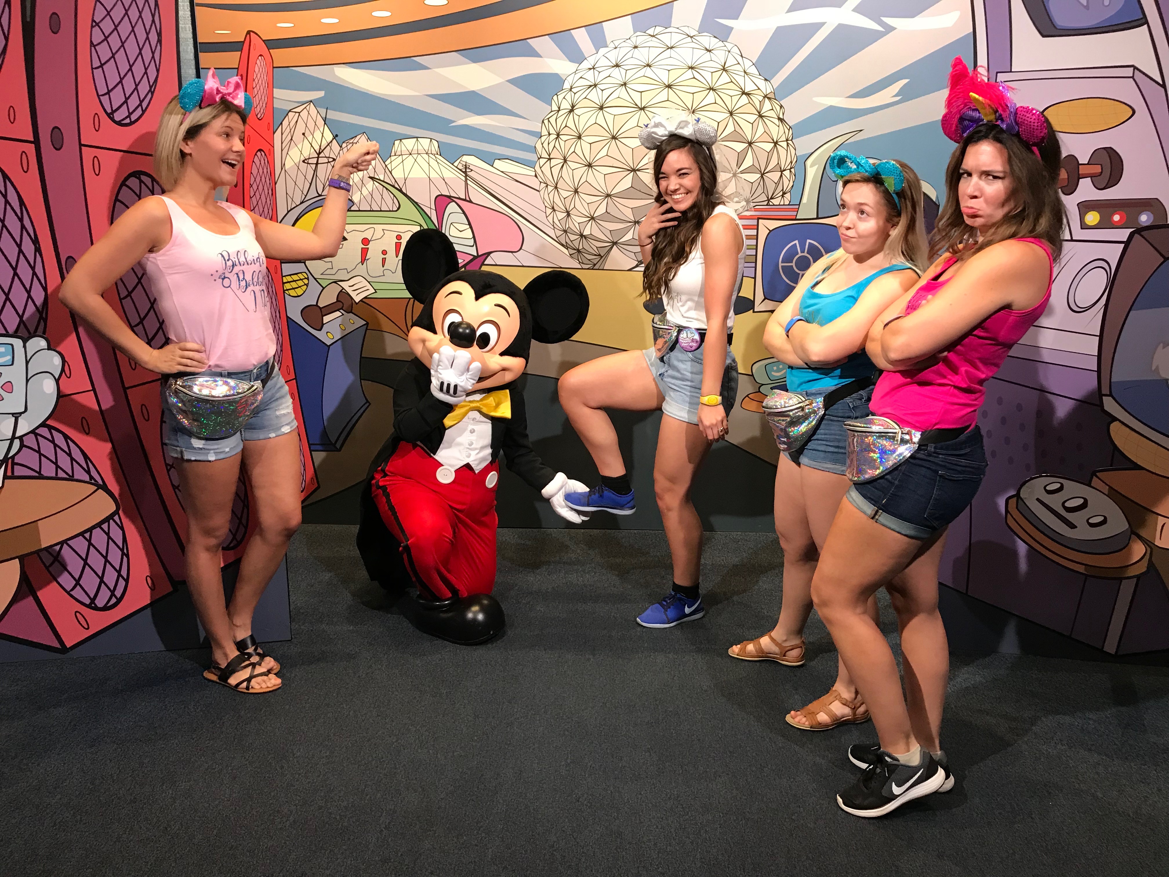We were able to walk to Epcot from our hotel, which was amazing. I had purposely scheduled all of our FastPast+ reservations for the morning, so we could spend the afternoon getting to the serious bachelorette activities. We started with a quick visit with Baymax since there wasn’t a line, and followed with meeting Mickey, Minnie, and Goofy at the Character Spot. We finished with Soarin’ Around the World and Test Track before heading our way to the World Showcase to get our drink on.