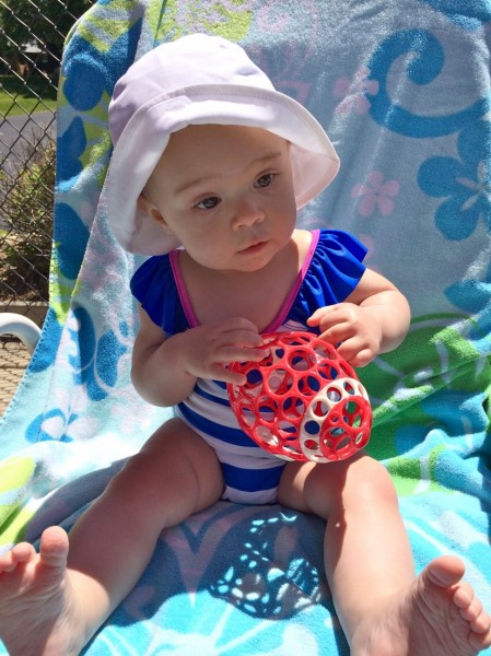 I’m going to preface with the fact that getting two babies to the pool is not an easy task, even with three grown women. They need swim diapers, then sunscreen, then their swimsuits and cover ups, then we have to pack a diaper bag, and I haven’t even gotten towels, toys and oh yeah – mom. That’s probably why I ended up sans-sunscreen and fried to a crisp.